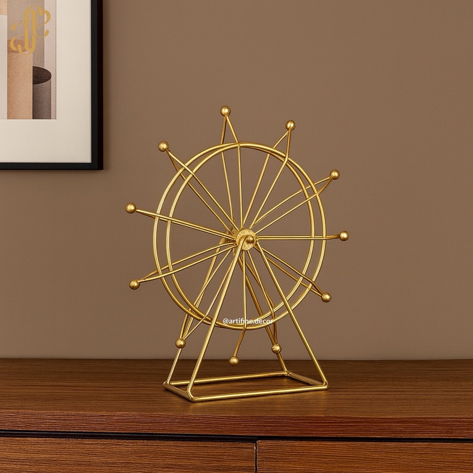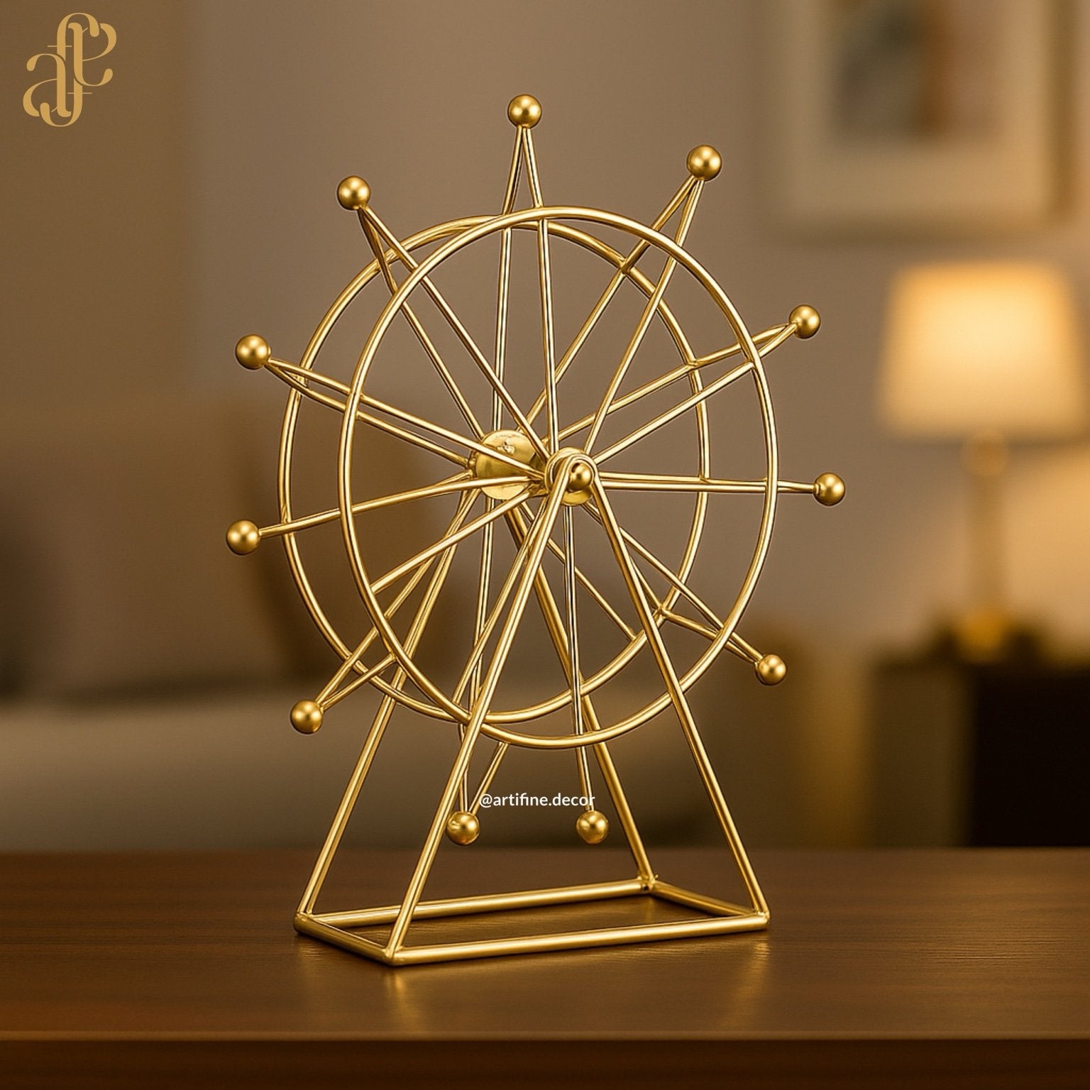 A modern masterpiece that brings motion and charm to your décor — the Golden Ferris Wheel Sculpture is a symbol of joy, balance, and sophistication.