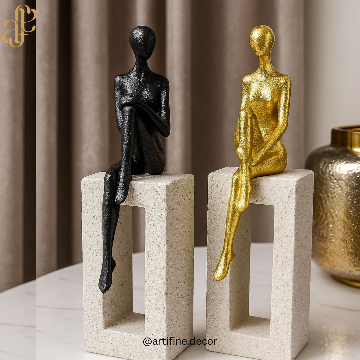 These Elegant Sitting Figurines feature a textured black or gold figure gracefully perched on a modern stone-style block, creating a striking contrast that elevates any interior.