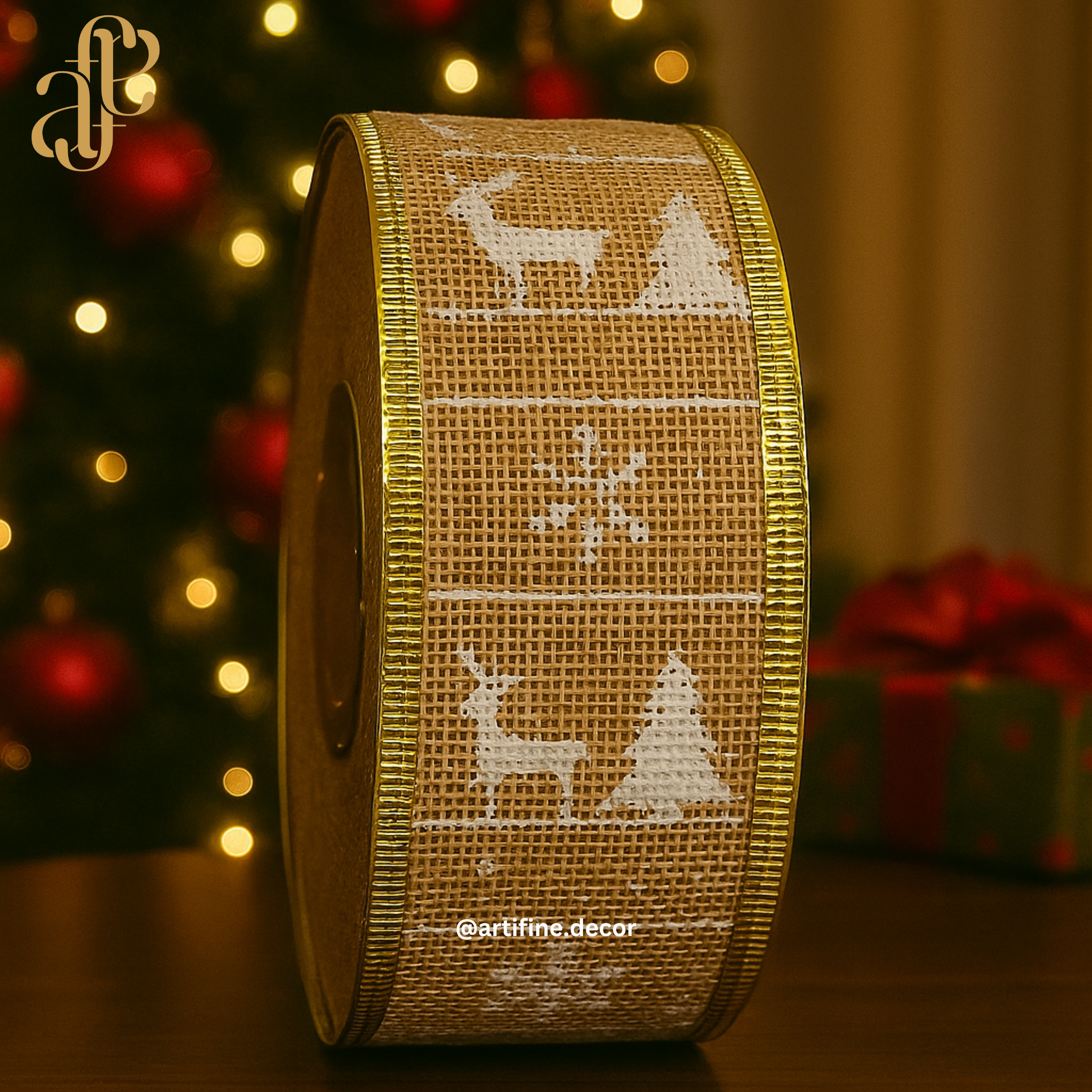 Beautifully detailed with reindeer and snowflake patterns, this ribbon blends natural charm with festive luxury β perfect for wrapping gifts, styling wreaths, or decorating your tree with a refined Christmas look.