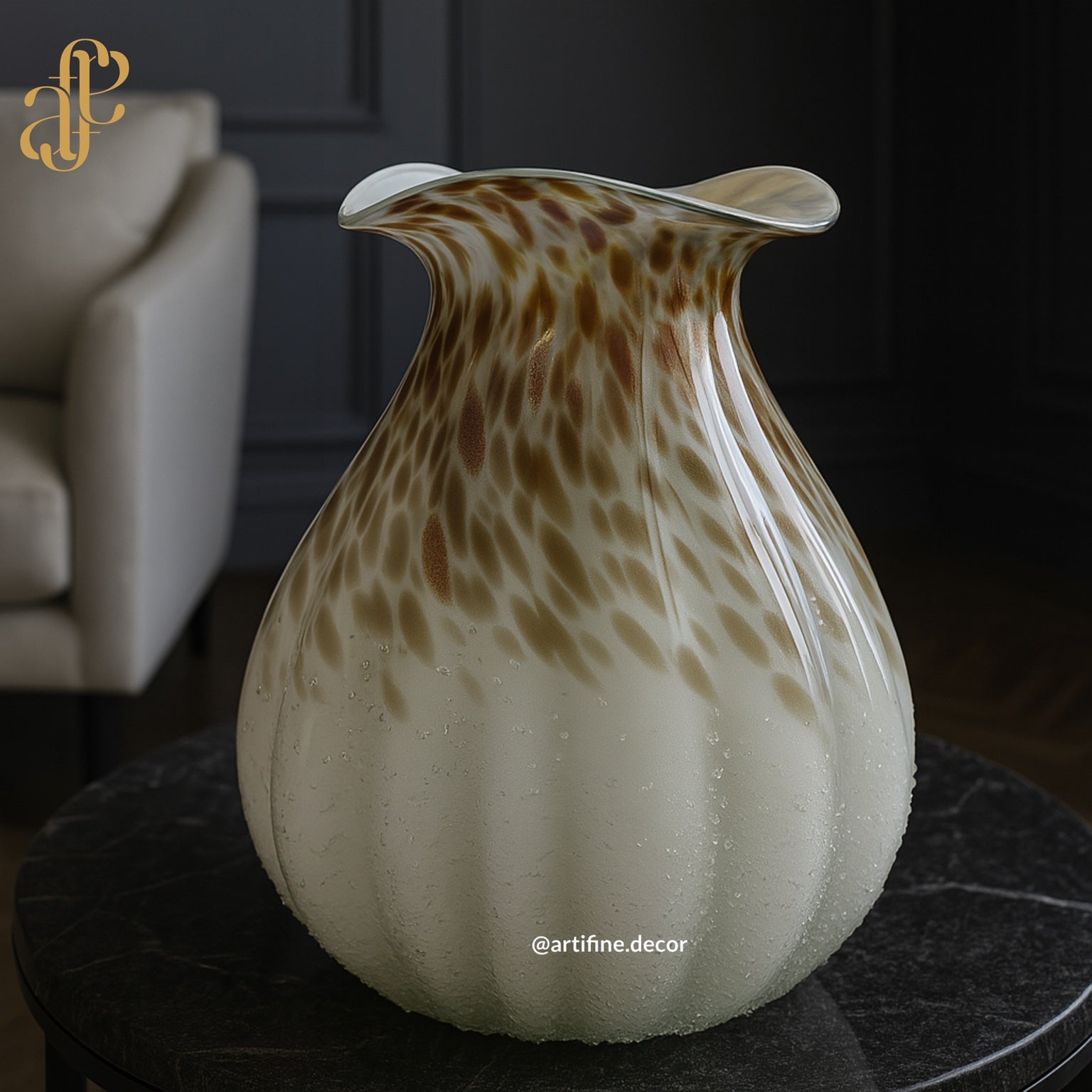 Beige Speckled Elegance Vase Set- Mouth-Blown Rippled Design