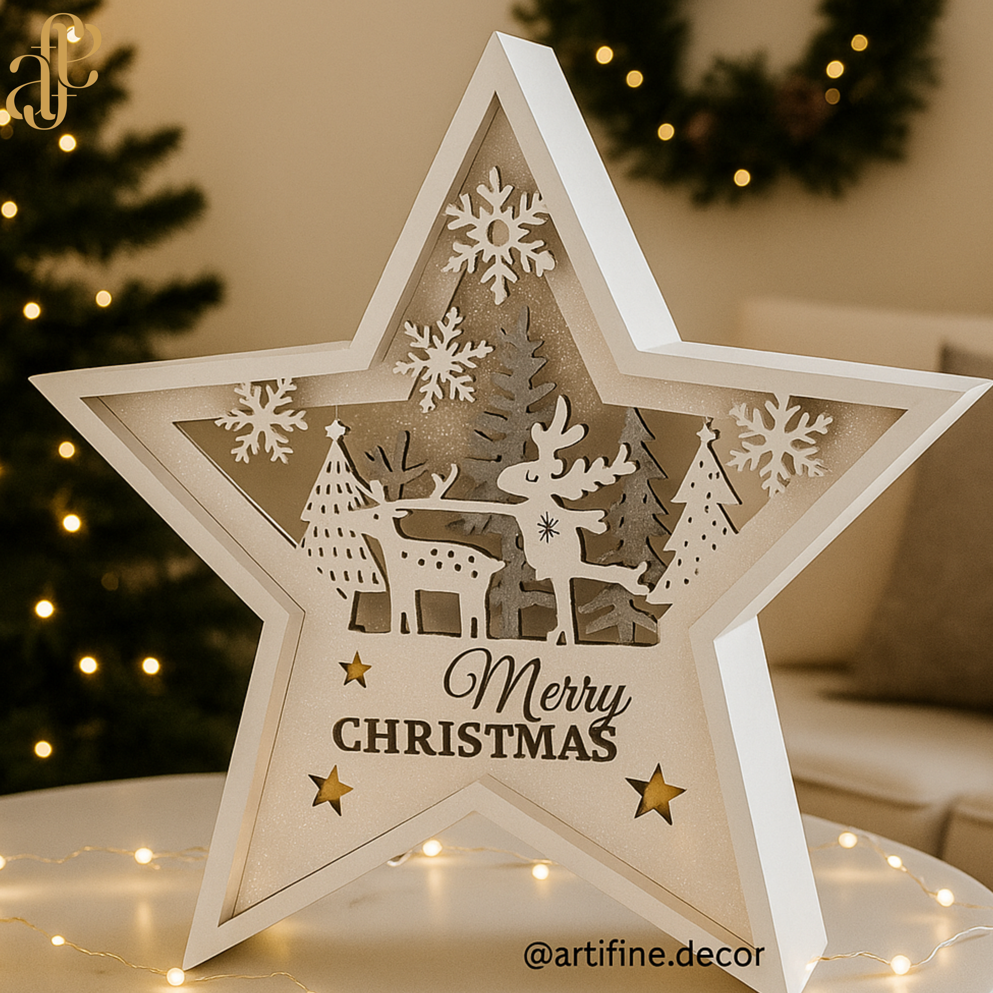 Brighten your festive setup with our beautifully crafted Christmas star featuring reindeer, trees, and shimmering snowflake details. A perfect piece to add warmth and sparkle to your home this season 🎄✨
