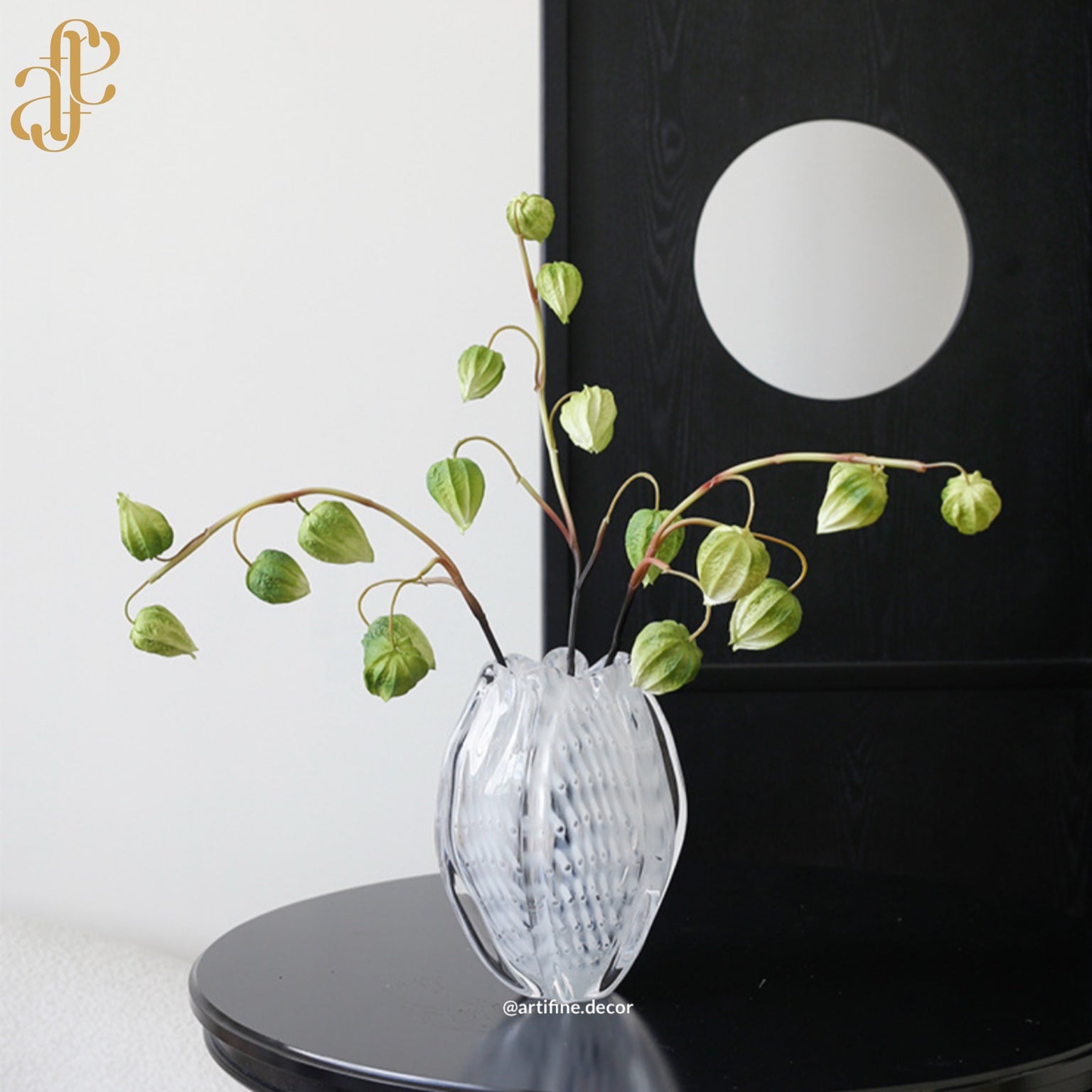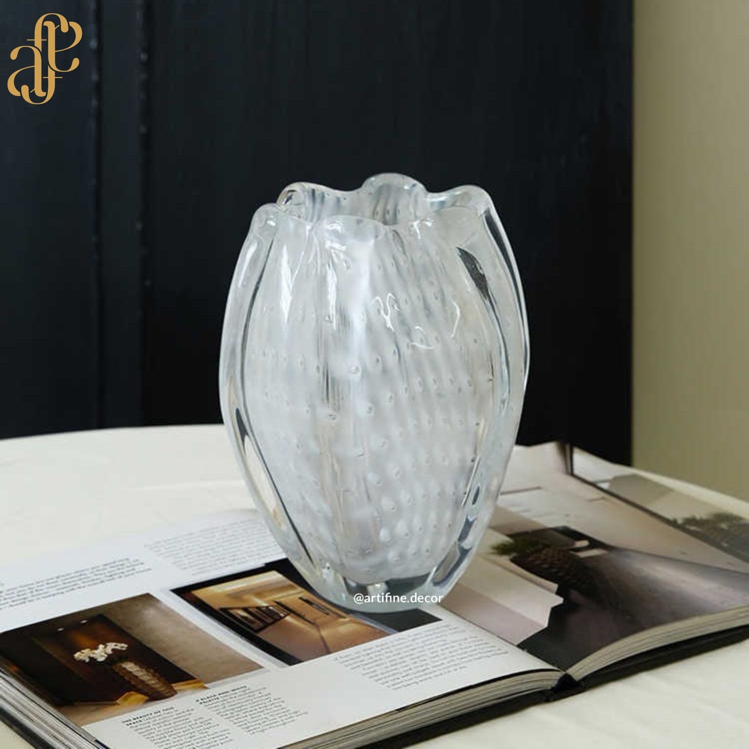 An exquisite piece of craftsmanship, this handmade bubble glass vase is mouth-blown by artisans to create a uniquely organic silhouette with delicate bubble-like textures. The soft vertical curves and airy transparency give it a sculptural presence — perfect for modern, minimalist, or artistic interiors.