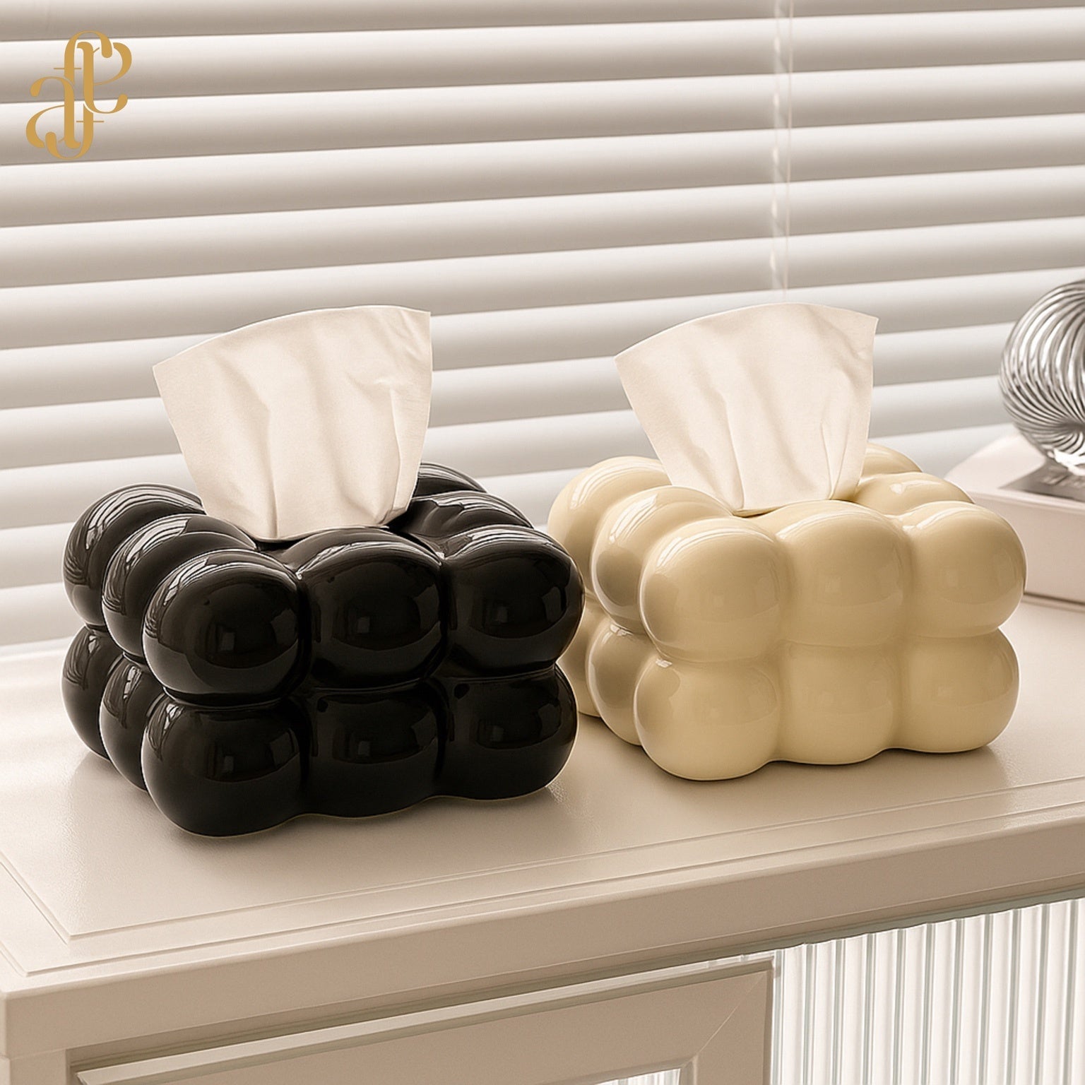 Elevate your space with this eye-catching bubble tissue box — a modern take on everyday elegance. Crafted in high-gloss ceramic and available in chrome silver, glossy black, and soft cream, it's a perfect blend of art and function. Whether on your vanity, coffee table, or bathroom counter, it transforms tissues into part of your decor.