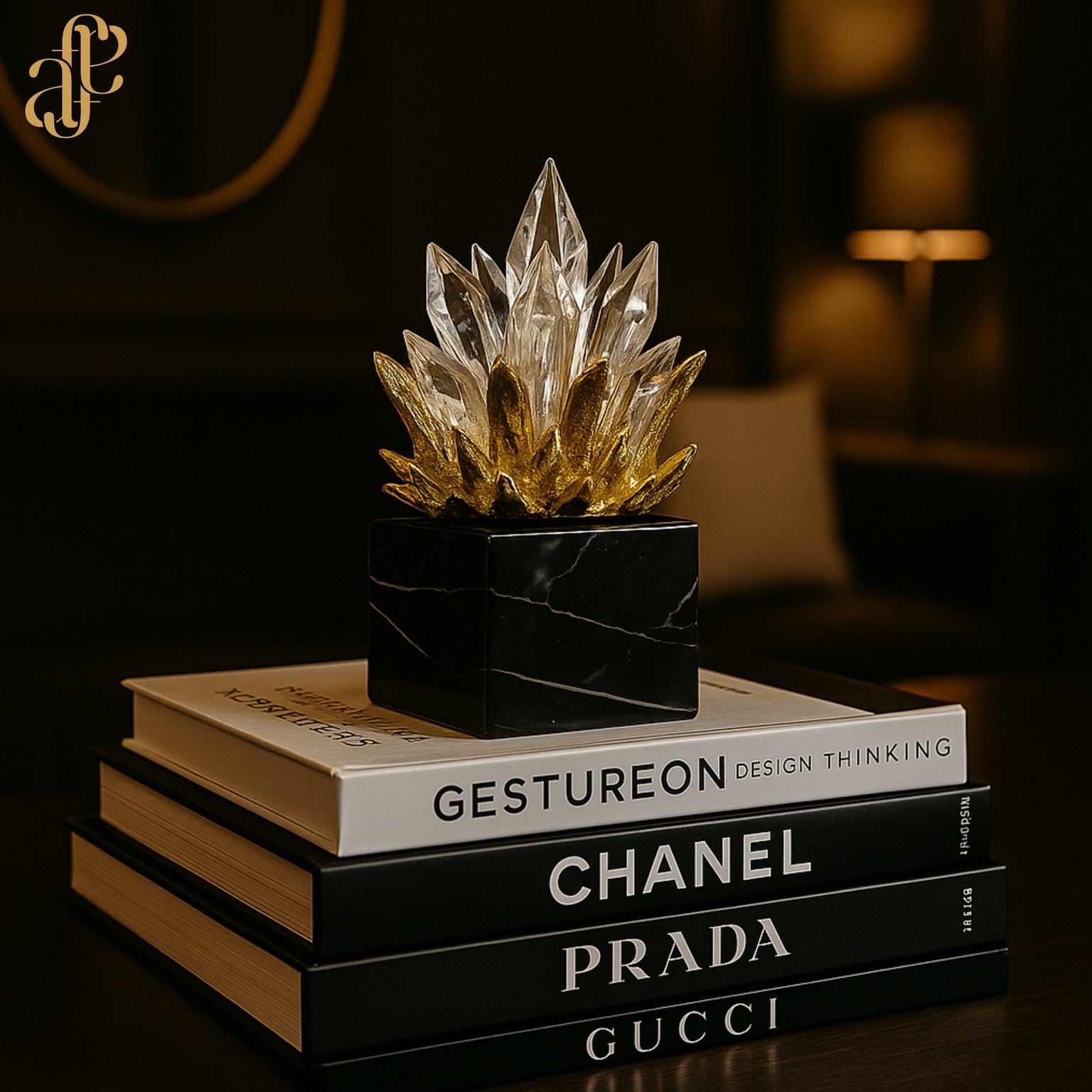 Elevate your space with the luminous elegance of this Crystal Flame Sculpture Set, masterfully crafted with radiant crystal tips and a natural marble base. The dynamic flame-like formation is enhanced with hand-painted gold accents, adding depth, shimmer, and luxury. Perfect for luxe interiors, console tables, or bookshelf styling, this duo is a timeless symbol of strength and artistic beauty.